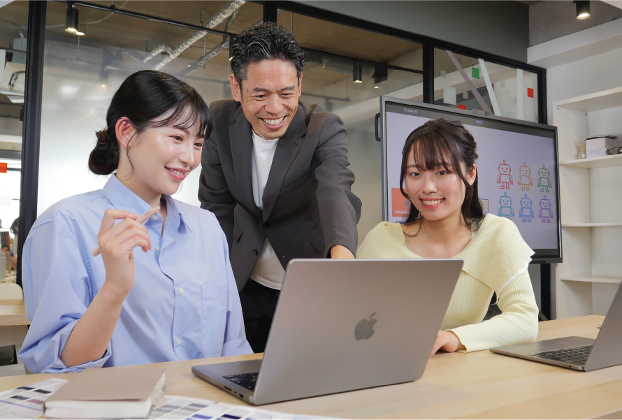 その理由は、GOグラデミーが単なるオンラインスクールではなく、実際に大阪で18年間、デザイン会社「サインズスクエア」が社内で実践してきた育成システムをベースにしているからです。